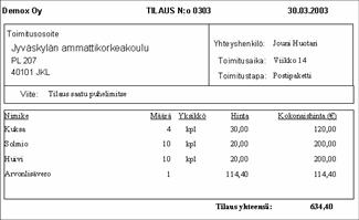 Täydennä Demox Oy:n käsitemallia kuvan raportista